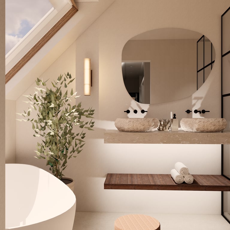 Dans ce projet, le défi était double : transformer une salle de bain de seulement 7 m² en un espace complet intégrant baignoire, douche, double vasque et WC, tout en repensant entièrement un mini-couloir pour en faire un dressing fonctionnel avec coiffeuse et rangements élégants, le tout à petit budget. Chaque mètre carré a été optimisé pour allier esthétisme, praticité et confort, malgré des contraintes d’espace particulièrement exigeantes.